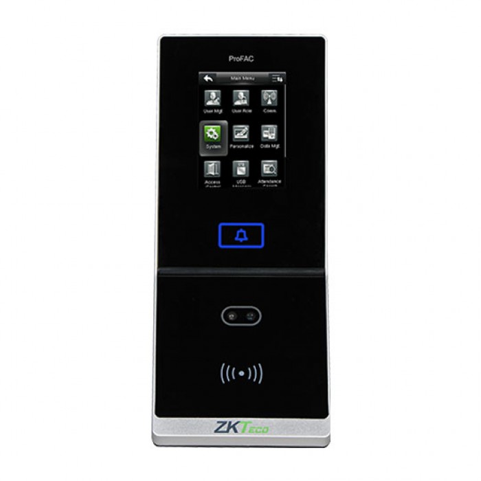 ZKTeco ProFAC adalah terminal akses kontrol dengan RFID dan kemampuan deteksi wajah. Dengan algoritme pengenalan wajah berkecepatan tinggi ZKTACE versi 7.0 ZKTeco terbaru dan platform perangkat keras ZMM220 (laju clock 1.2GHz), ZKTeco memiliki kecepatan verifikasi yang sangat tinggi dan tingkat kesalahan yang rendah. ProFAC dapat menampung hingga 2000 (1:N) template wajah 4000 (1:1). dan 10.000 kartu RFID. Ini kompatible dengan pengontrol dan perangkat pihak ketiga seperti kunci pintu listrik, alarm, bel pintu dan sensor pintu.